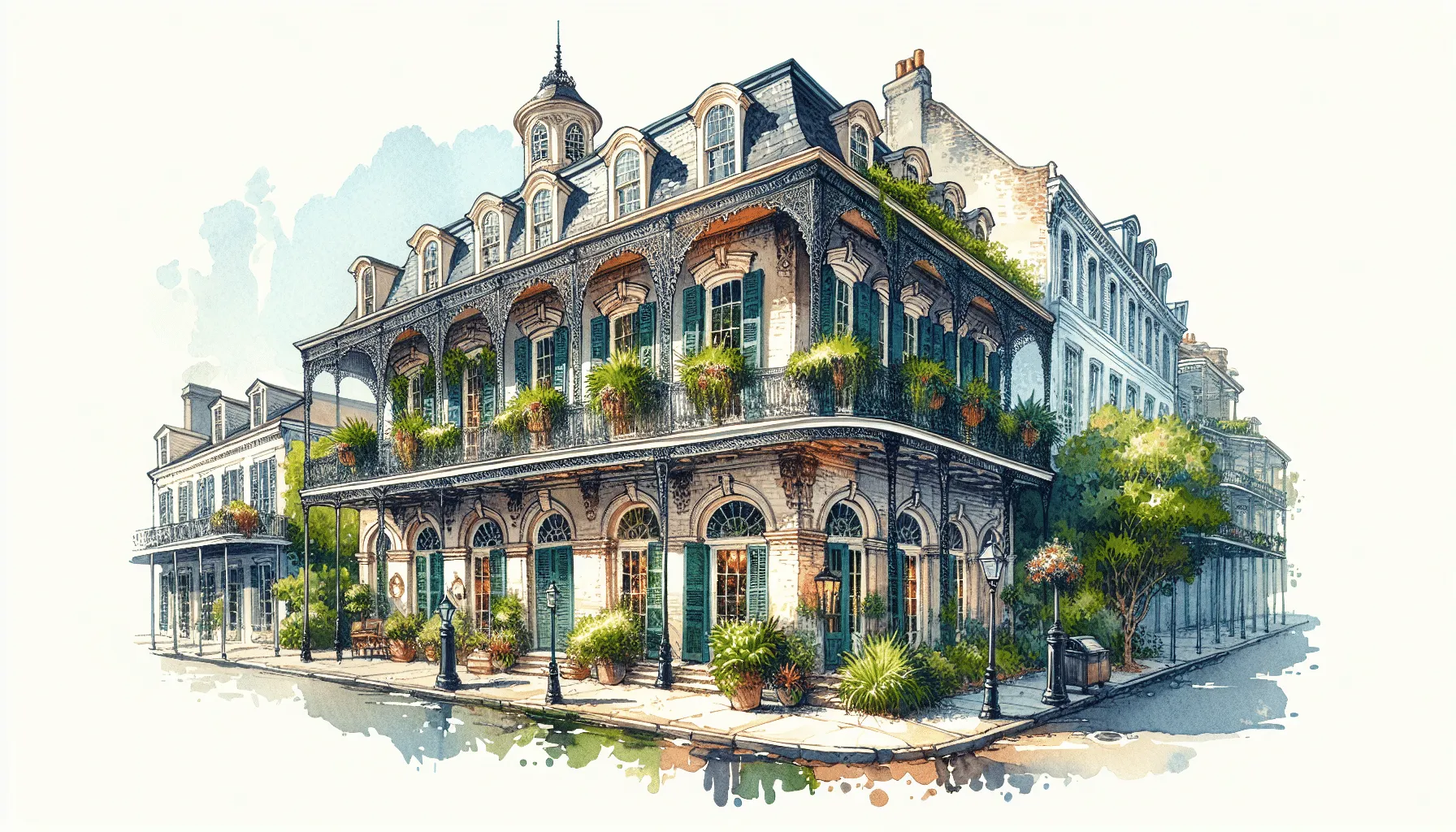 Napoleon House is a prime example of French Creole architecture, a style that blends French and Spanish influences with elements of the Caribbean. The three-and-a-half-story building features stuccoed brick walls, wrought-iron balconies, and a distinctive hipped roof crowned by an octagonal cupola.